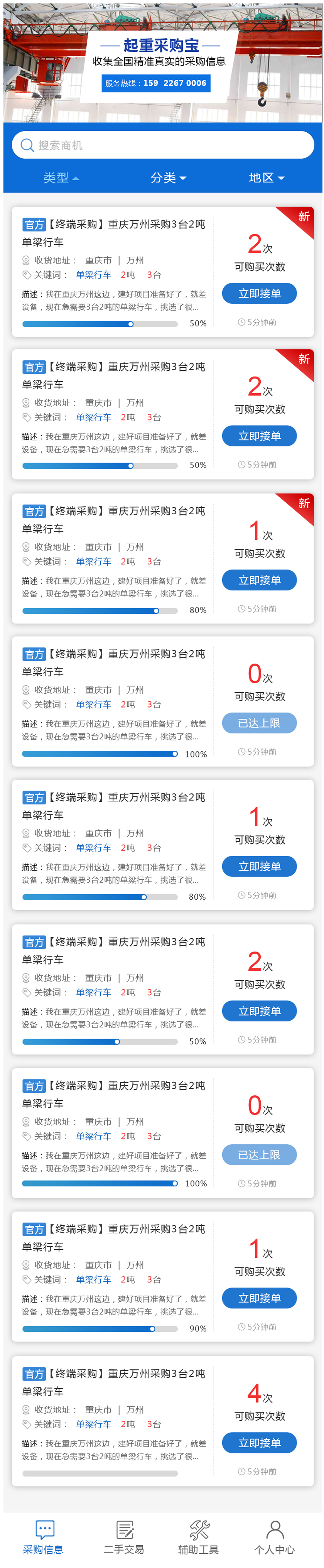 Project Description 欢迎您关注起重采购宝,我们每天为您实时推送全国各地真实有效的起重设备采购信息,让您直接面对终端采购客户,起重采购宝助您生意更上一层楼! Official website address 盘锦# I want to share
